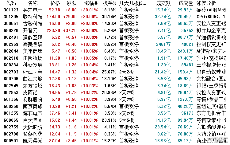 焦点股方面,零售股百大集团晋级5连板,实控人变更的胜通能源4连板、皮阿诺3连板,智能驾驶概念股三羊马3连板,钧达股份、金圆股份4天2板,浙江世宝、翠微股份等2连板。