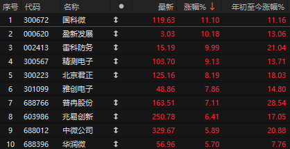 分行业来看,有色金属、非银金融、基础化工、国防军工、综合等行业领涨,仅通信板块下跌。