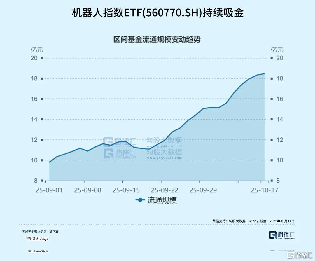其中,机器人指数ETF(560770.SH)9月以来,获资金净流入9.7亿元,基金最新规模突破18.47亿元,再创上市以来新高。