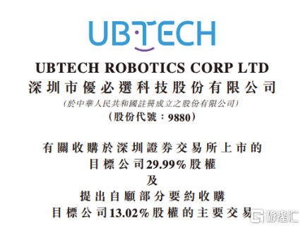 消息面上,优必选发布公告,宣布拟通过协议转让与要约收购相结合的方式,取得A股上市公司浙江锋龙电气股份有限公司的控股权。