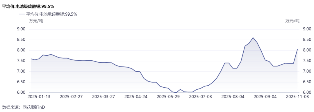 事实也是如此。随着今年7月行业启动“反内卷”举措以来,市场悲观预期边际缓解;供给端方面,部分矿山停产引发供给收缩,进一步支撑价格上行。