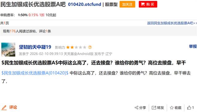 笔者发现,民生加银成长优选股票A基金一直由孙经理单独管理,管理长达5年又108天,但任职回报-20%。基金业绩下降,有基民表示,中际旭创这么高了,还去接盘?高位去接盘,早干嘛去了。有基民在帖子下面回复,这5年一直在高点接盘,别指望回本,卖了就解脱了。也有基民表示,2021年同时买了民生这个基和易方达智造优势混合,民生现在亏25个点,易方达赚了80个点,这就是差距,一个天坑,一个天梯。