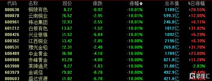 兴业银锡、铜陵有色、中国黄金、云南铜业(有色金属、贵金属)