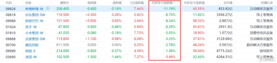 恒生指数微幅下跌0.18%,国企指数跌0.42%,唯独恒生科技指数跌幅相对较大,月跌5.23%。其中,恒指本月在26000点反复,最终仍旧失守关键点位。