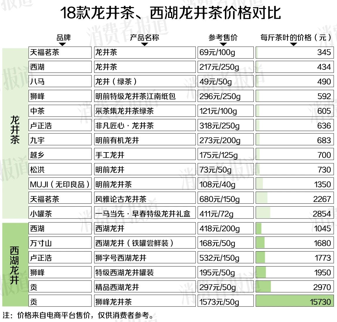 02. 18款龙井茶对比:不同产区每斤价差逾45倍