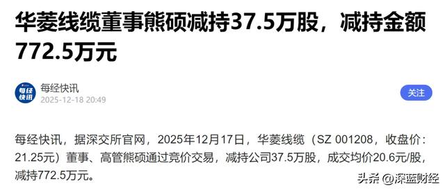 据深交所官网,2025年12月17日,总经理熊硕通过竞价交易,已减持公司375000股,成交均价20.6元/股,减持772.5万元。