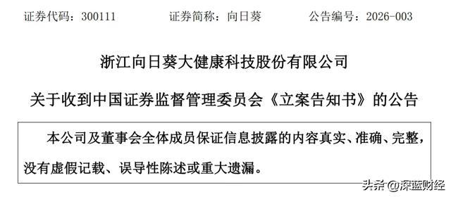 1月14,浙江证监局对向日葵重组预案涉嫌误导性陈述立案调查。这是2026年开年以来首家因并购重组信披涉嫌违法违规被立案调查的公司。