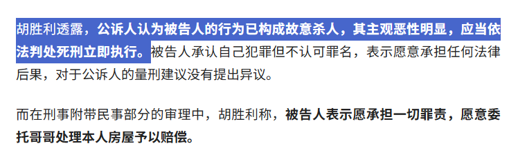 张某豪母亲的代理律师胡胜利透露,公诉人认为被告人的行为已构成故意杀人,其主观恶性明显,应当依法判处死刑立即执行。