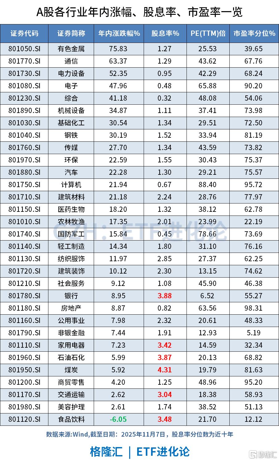 今年以来港A股领涨全球,从A股行业看,申万一级行业中,仅有食品饮料板块年内涨幅为负数,堪称最惨板块,其股息率3.48%,市盈率21.7倍,位于近10年12.12%分位。