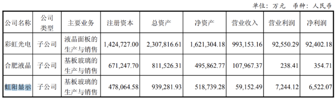 公开资料显示,彩虹股份主营业务是基板玻璃、显示面板的研发、生产与销售,形成了“面板+基板”上下游产业联动效应的产业布局。