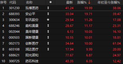 今天AI医疗板块掀起涨停潮,泓博医药、美年健康、国新健康、创新医疗等多股涨停。