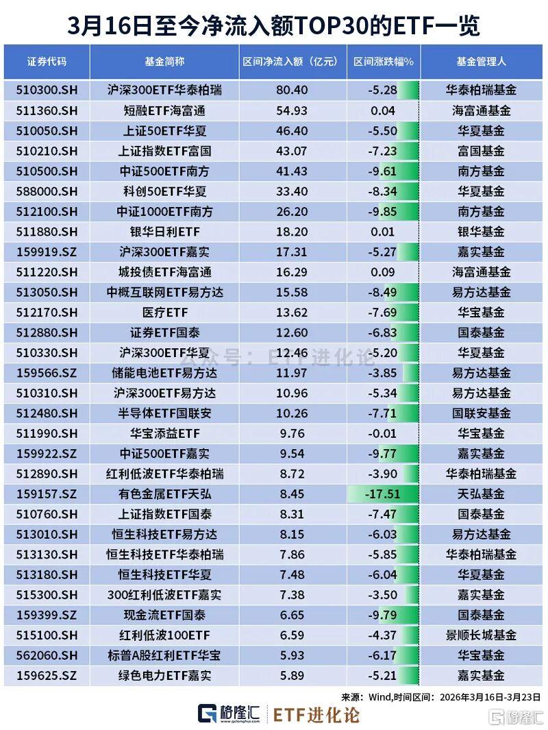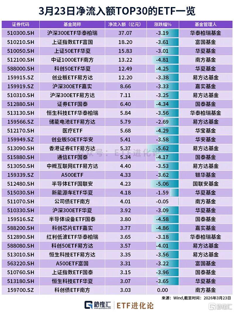 3月23日,ETF市场净流入190.62亿元,只有股票ETF获资金大幅抄底。