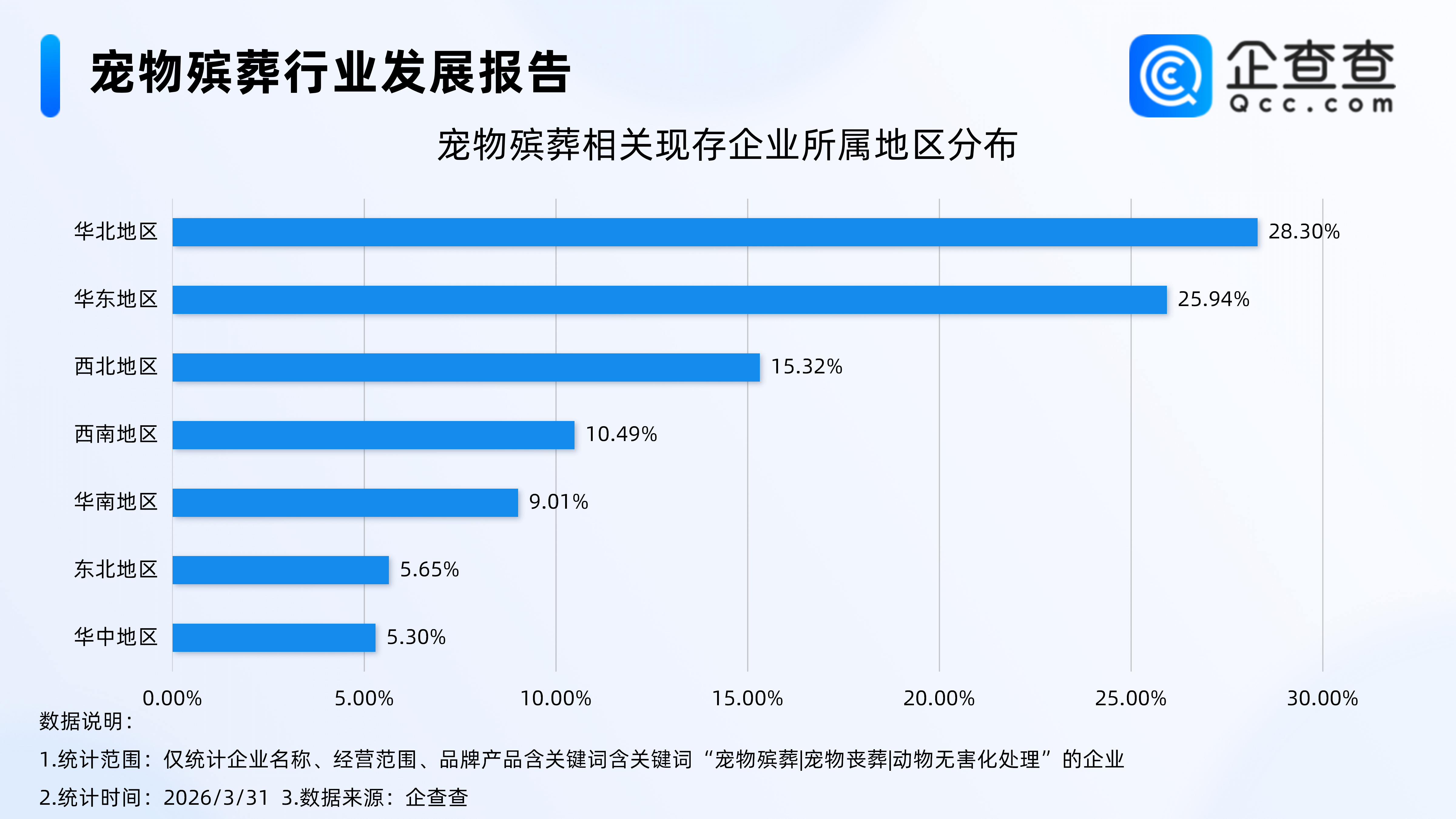 企查查数据显示,宠物殡葬相关企业呈现明显的地域集中特征,其中华北与华东地区相关企业合计占比54.24%,成为宠物殡葬相关企业布局的核心区域。