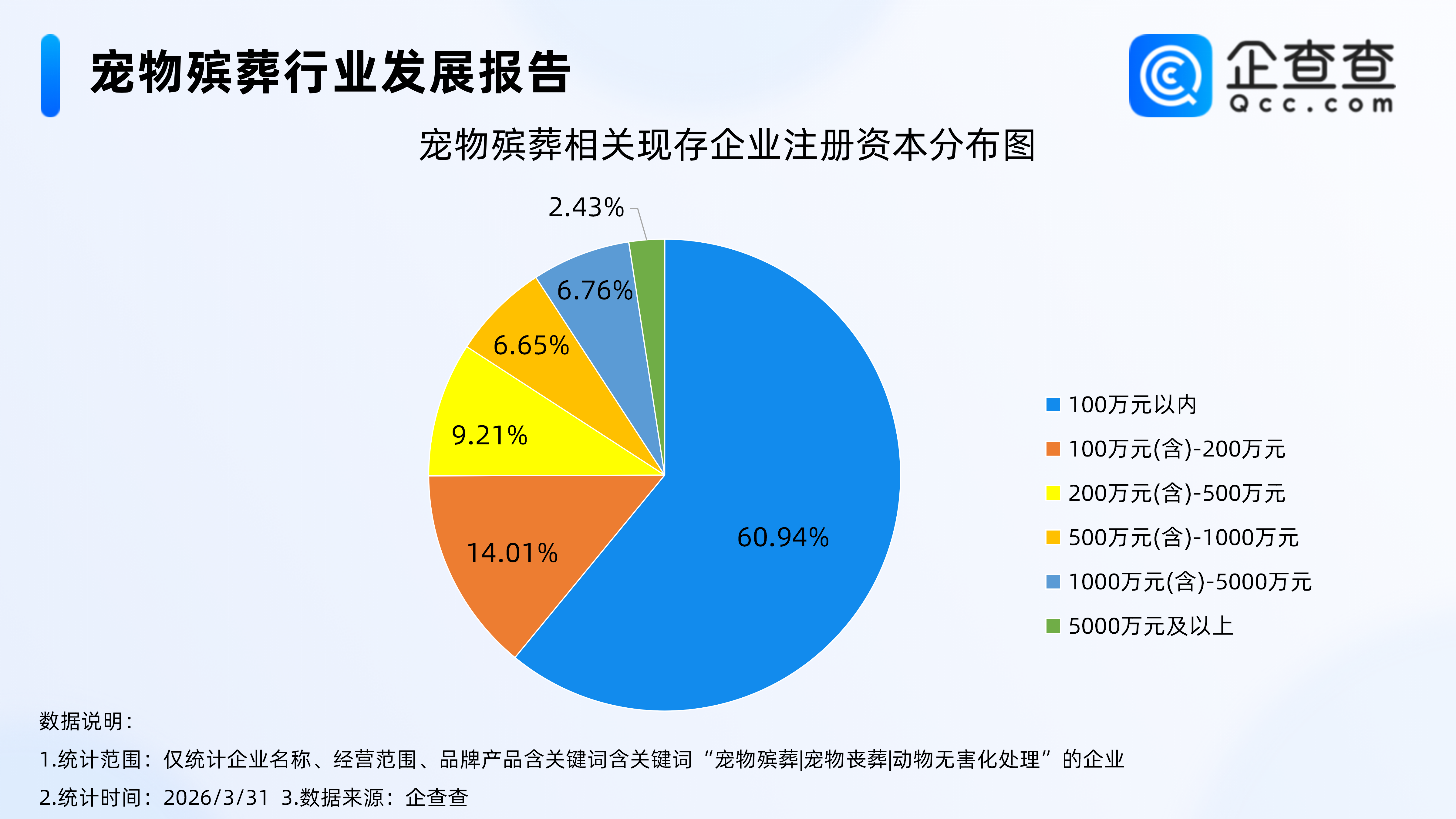 企查查数据显示,从注册资本结构来看,宠物殡葬相关企业以轻资本运营模式为主。超六成相关企业注册资本在100万元以内,行业准入门槛相对较低,中小微企业为市场主体。
