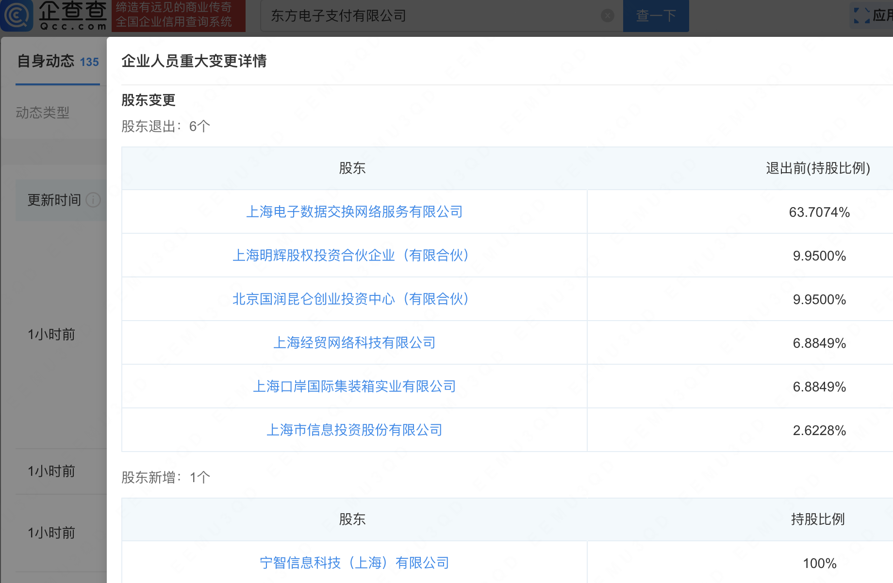 企查查APP显示,近日,支付机构东方电子支付有限公司发生工商变更,原股东均退出,新增小红书科技有限公司全资子公司宁智信息科技(上海)有限公司为股东,持股100%。企查查信息显示,该公司成立于2008年,注册资本2亿元,经营范围包含:非银行支付业务;通信设备销售;计算机软硬件及辅助设备零售等。公开信息显示,该公司是经中国人民银行批准获得《支付业务许可证》的第三方支付机构,初始业务类型为互联网支付,2024年8月起变更为储值账户运营Ⅰ类业务。