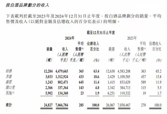 拉长时间维度,珍酒品牌销量已连续四年萎缩,2021年至2024年销量分别为14761吨、12856吨、12630吨、12284吨,持续的销量下滑直接影响了集团整体业绩。