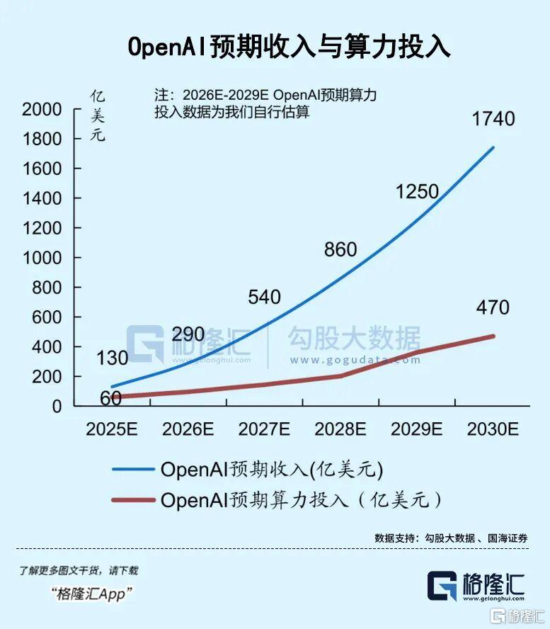 更关键的是算力变现。未来OpenAI可能效仿AWS出租算力,按2030年全球算力需求测算,这块业务能新增500亿美元营收。