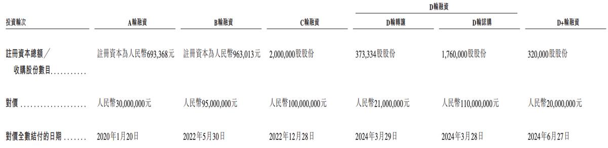就2024年3月的D轮融资而言,涵盖了1.1亿元的D轮认购,以及2100万元的D轮转让。其中,廖峪分别向高贺健、赵丹丹、吴爽转让32万股、35556股、17778股股份,每股成本为56.3元,合计约2100万元。