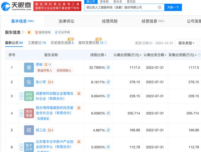 天眼查App信息显示,诺比侃成立于2015年3月,前称为成都诺比侃科技有限公司。目前,该公司的注册资本为3408万元,法定代表人为廖峪,主要股东包括廖峪、张小军、博将资本等。