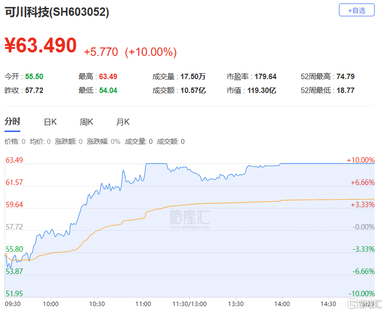 可川科技:今日涨停,偏离值17.49%,换手率9.31%,成交额10.57亿。龙虎榜数据显示,沪股通专用席位净买入4487.74万元,1机构净买入1.26亿元。
