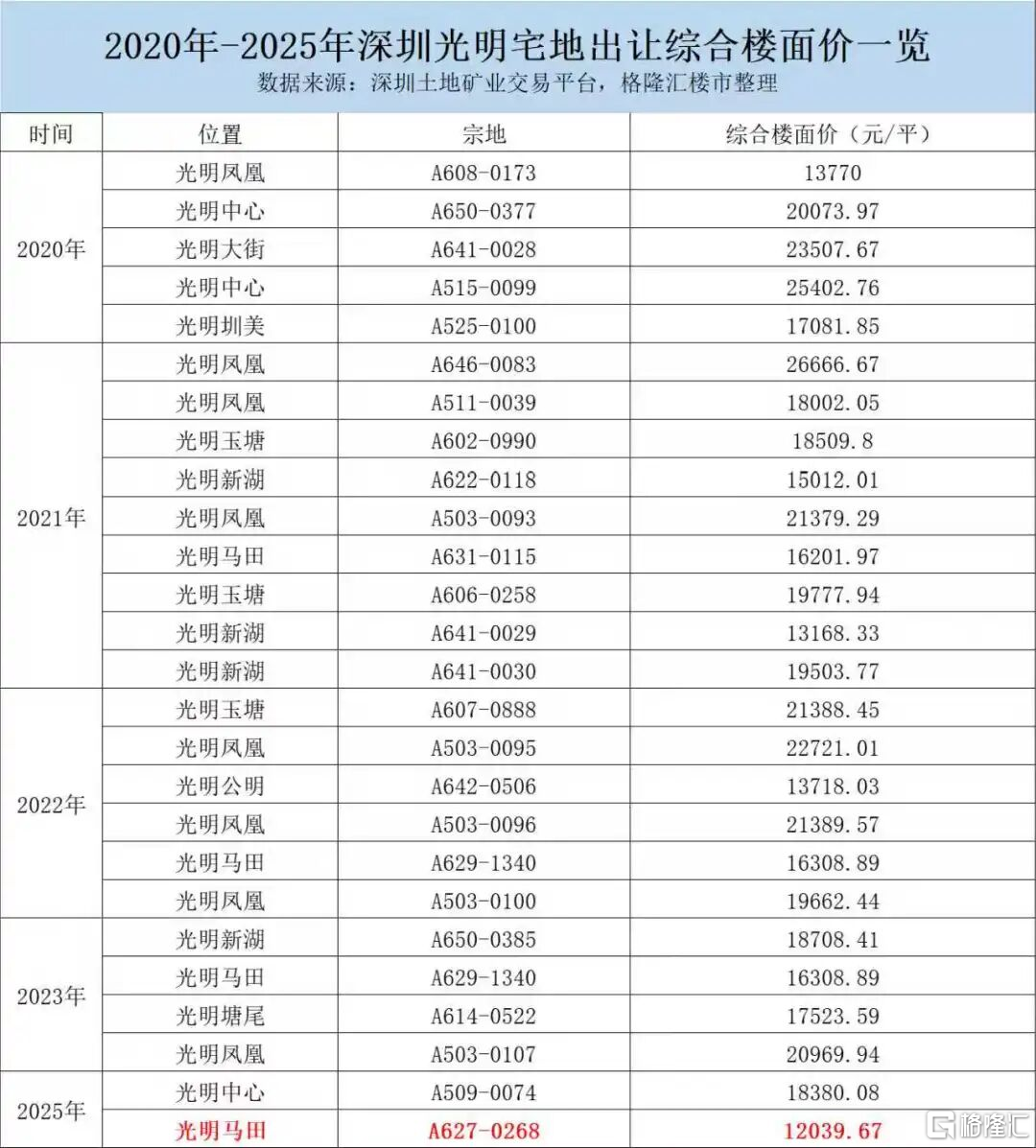 因为这已经是深圳光明近5年宅地出让最低的楼面价格,相比过去同地段的宅地出让综合楼楼面价已经便宜了几千块。