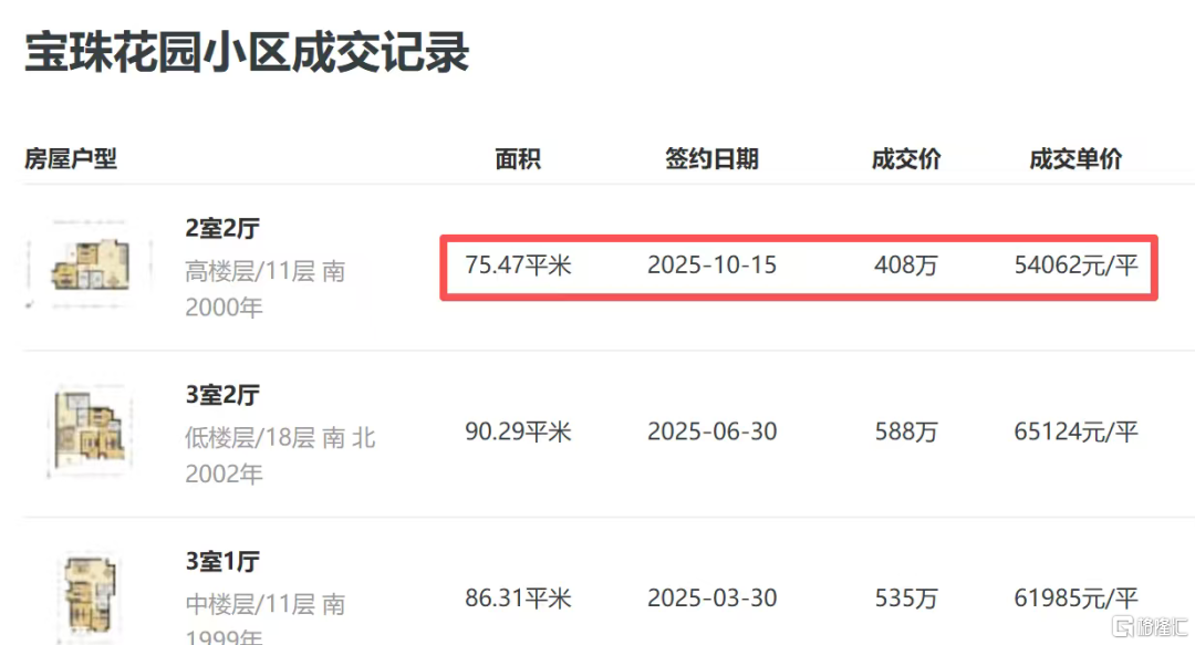 宝珠花园今年10月成交一套75.47平户型,成交总价408万,折合单价约5.41万/平。