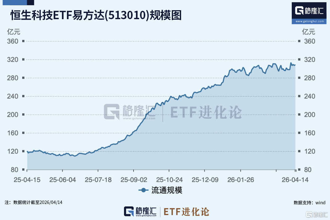 二是规模庞大,流动性充裕。截至2026年4月14日,该ETF最新规模308亿元,日内成交额充足,支持T+0交易,既能满足短期波段操作需求,也能容纳大额资金进出。