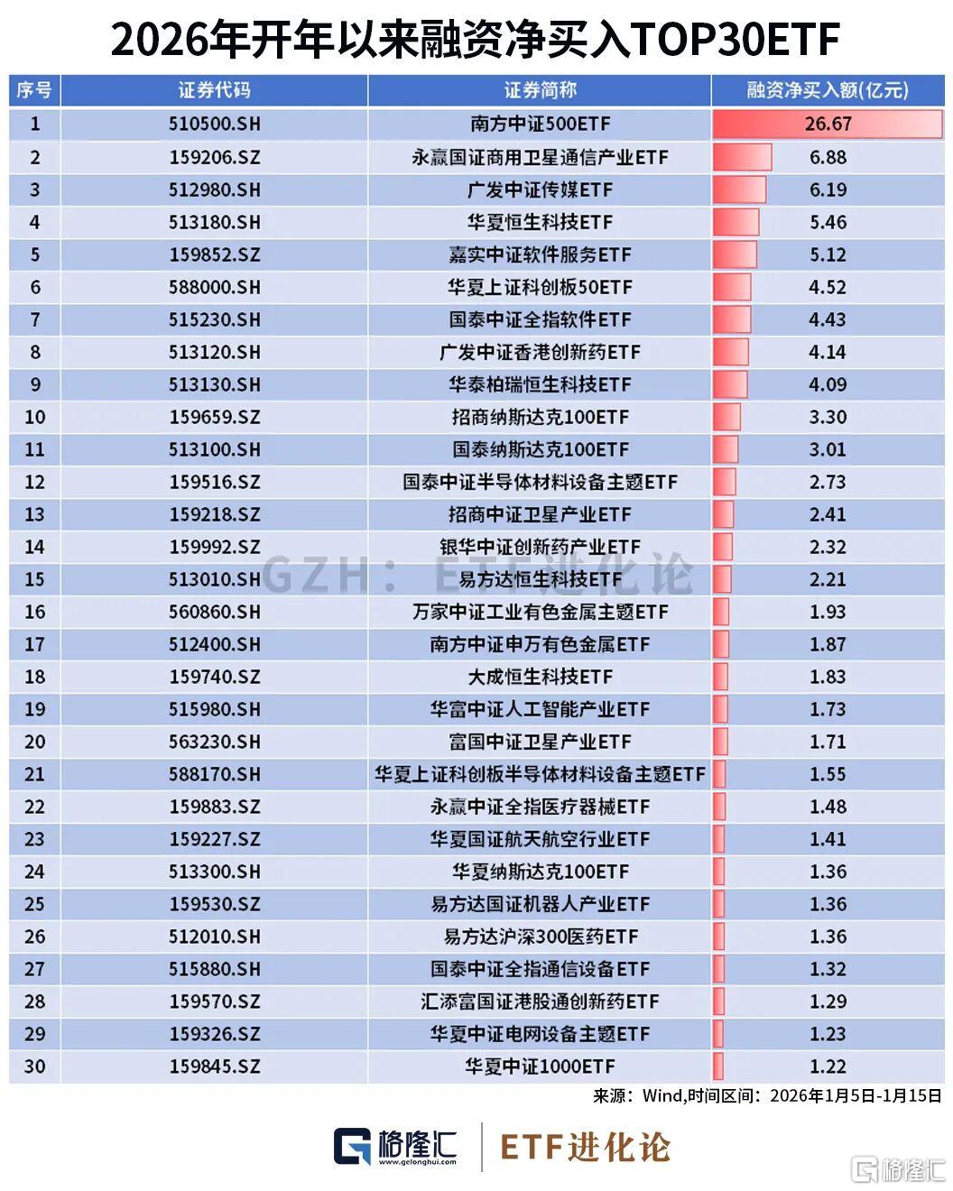2026年开年以来,净买入居前的是热门行业主题指数:卫星通信、中证传媒、中证软件。