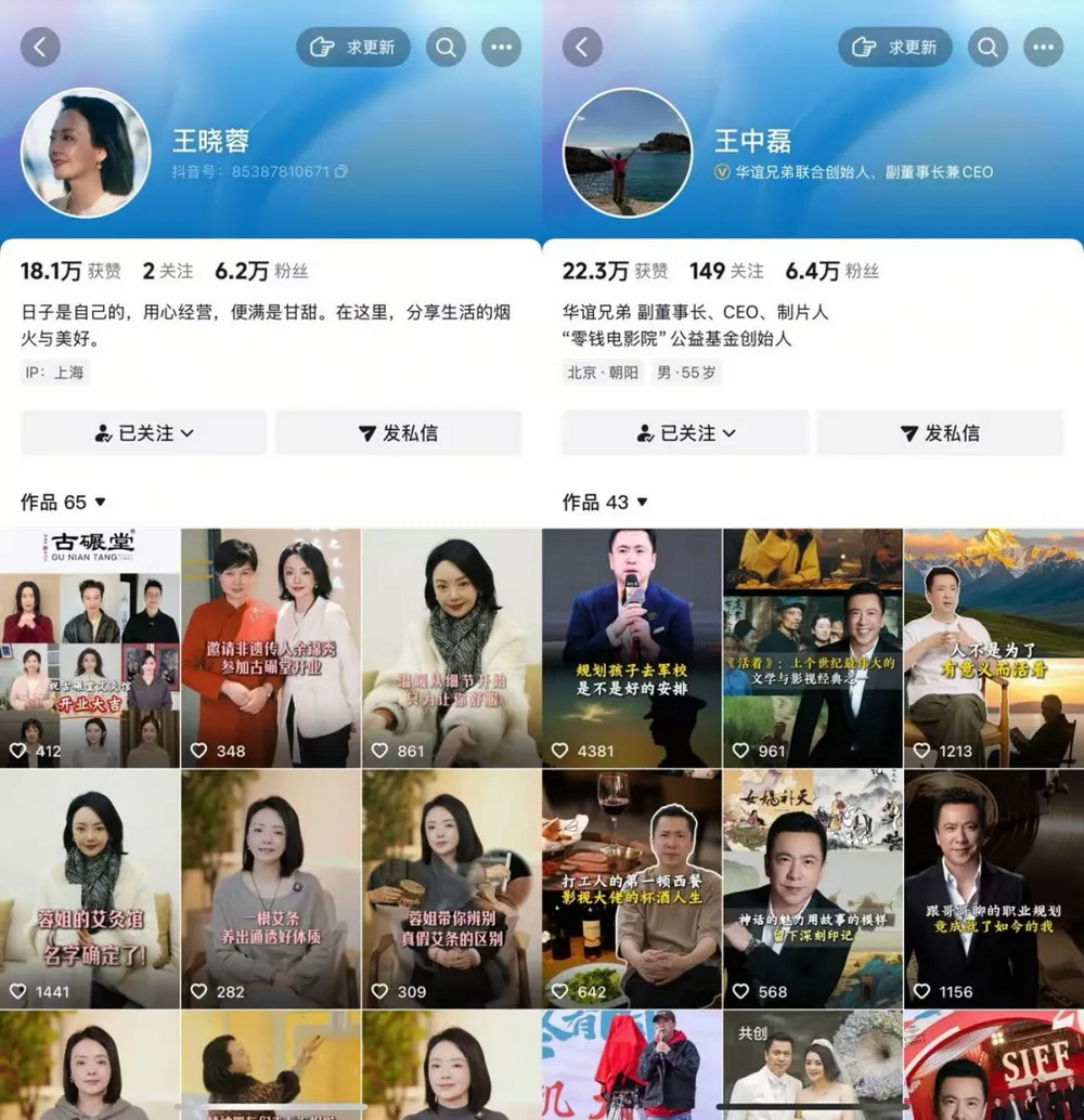 王忠磊夫妇上一次引发舆论围观,是因为高调发力短视频。2025年10月以来,王忠磊和王晓蓉开始高频在短视频平台更新内容,此举引发舆论热议。他们的作品主题多为人生哲学、夫妻关系经营等,此外还有手串、茶叶、艾灸等相关内容,专业团队运营痕迹。因此,当时有市场观点猜测王忠磊夫妻未来或有可能进行直播带货。