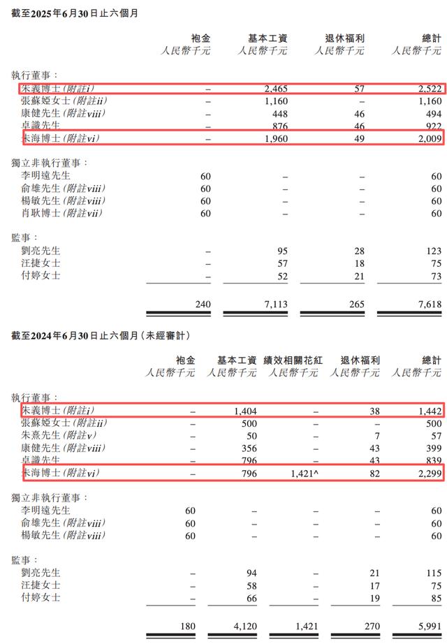同在2025年上半年,朱义、朱海分别从百利天恒取得基本工资246.5万元、196.0万元,分别叫2024年同期的140.4万元、79.6万元增加75.57%、146.23%。