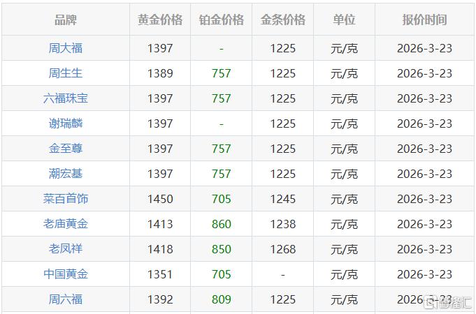 国内品牌金饰价格也较昨日集体下跌,单日跌超70元,多数报1400元/克下方,在3月初金价还普遍高于1600元/克。