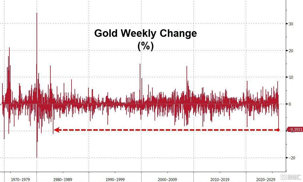 历史数据显示,本次黄金的跌幅正是43年前那场"卖金筹资"风暴以来最惨烈的一次。