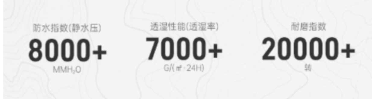 以冲锋衣最看重的防水性能为例,目前商家普遍采用防水指数(面料静水压)指标来衡量其防雨能力,直接对应在暴雨、湿雪环境下撑多久会渗水,单位是毫米水柱(mmH₂O),数值越大,防水性能越强。