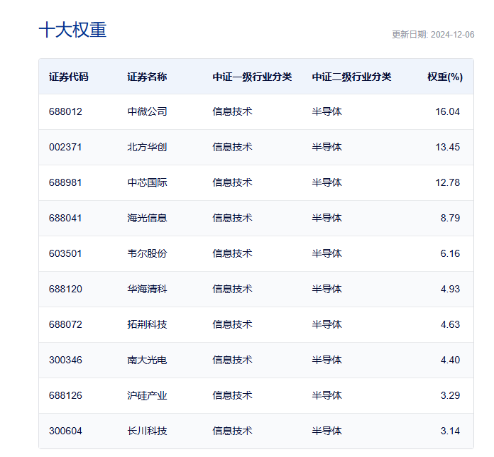 图:中证半导(931865)前十大权重及集中度