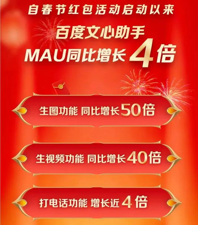 据1月20日报道,月活跃用户数已突破2亿大关。自春节红包活动以来,文心助手MAU同比增长4倍。
