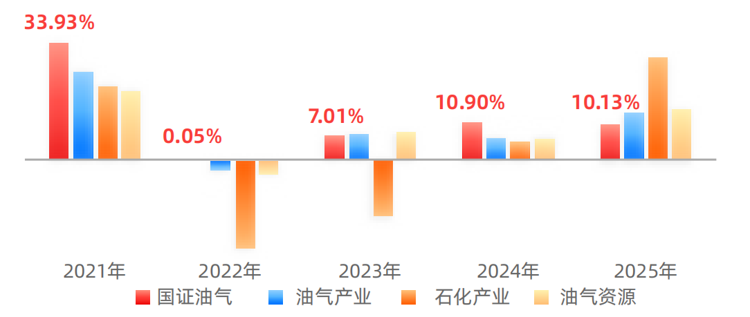 从自然年度看,在2021年至2025年五个完整年度中,分别上涨33.93%、0.05%、7.01%、10.90%和10.13%,充分彰显了能源核心资产的配置价值与穿越周期能力。