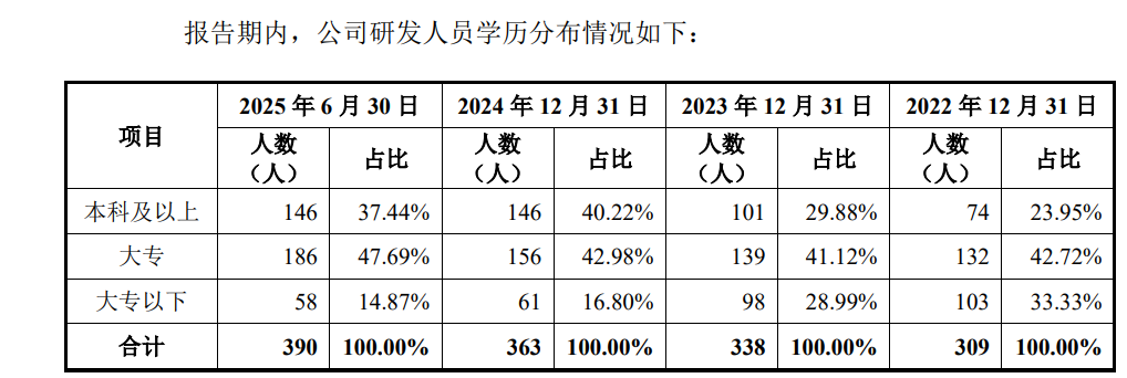 作为一家申报主板上市的高新技术企业,至信股份的研发能力却备受质疑。招股书显示,至信股份研发人员本科及以上人数占比常年在41%以下,2022年度更是不及24%。在当今科技飞速发展的时代,高素质的研发人才是企业创新的核心动力,而至信股份较低的研发人员学历水平,无疑会限制其研发能力的提升。