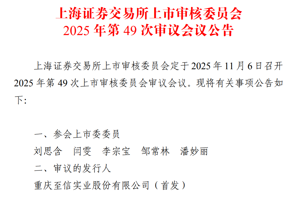 中国产经观察消息:2025年6月6日,重庆至信实业股份有限公司(以下简称“至信股份”)向上海证券交易所主板递交招股书并获受理,4个月答完两轮问询回复,仅仅5个月就首发上会。然而,在这看似光鲜的上市征程背后,至信股份却隐藏着诸多令人担忧的问题,其沪主板上会之路充满了变数与挑战。