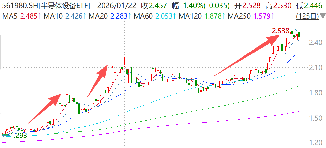 跟踪这个指数规模最大的半导体设备ETF(561980),目前净值和规模都在新高。看日K属于是顶部阶段性震荡,之前每次出现这种情况都是在酝酿新一轮上涨。目前资金已经连续5天加仓,看来也在埋伏下一波主升浪。