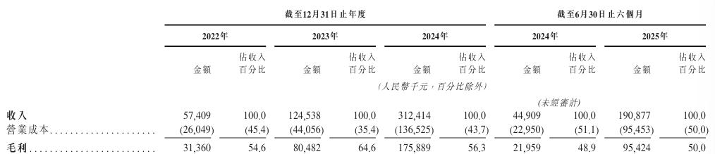 在高度灵活可扩展的商业模式下,智谱的业绩呈指数型增长,2022年、2023年和2024年分别实现收入5740.9万元、1.25亿元和3.12亿元,复合年增长率达133.3%;2025年上半年的收入亦同比大增325.0%至1.91亿元。