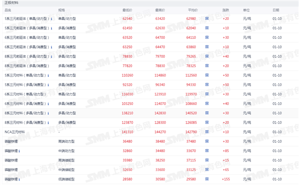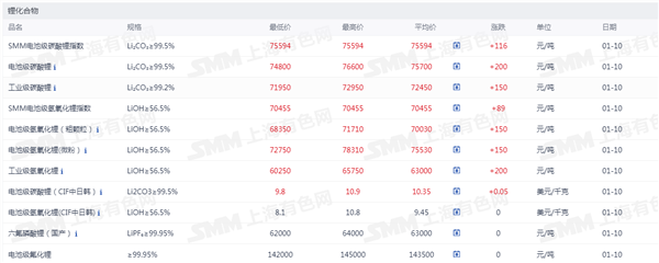 证券之星新能源车行业周报:据上海有色网,截止1月10日,本周磷酸铁锂市场价格出现止跌并小幅上涨的迹象,总体平均上涨约130元/吨。本周价格上涨的主要由于碳酸锂价格在本周上涨趋势明显,上涨约600元/吨。加工费在本周暂时持稳,但鉴于近期材料厂与下游电池厂对于长协谈判有了结果,预计近期中高端材料加工费可能会出现小幅上升。在供应方面,本周磷酸铁锂材料厂整体开工情况依然较为活跃,总体未出现明显减产现象。需求方面,下游电芯厂排产情况较为稳定,与去年同期相比有明显增长。