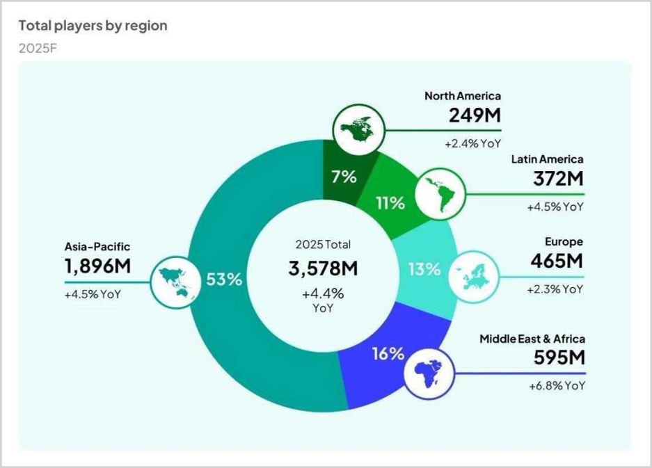 游戏先天可以跨越年龄、国界和文化差异,根据海外游戏市场研究机构Newzoo发布的最新报告显示,2025年全球游戏玩家数量预计将达到35.8亿人。