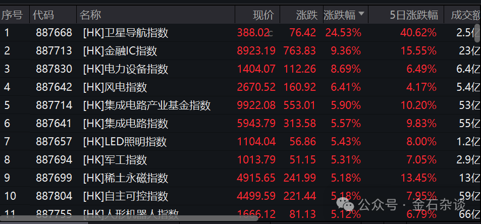 除了半导体、科技赛道,航空航天、风电以及稀土永磁、机器人等也涨幅喜人。其中,亚太卫星涨34%,航天控股涨超18%,市场继续预期周一A股商业航天行情。而且,持股蓝箭航天10%股份的金风科技暴涨20%。