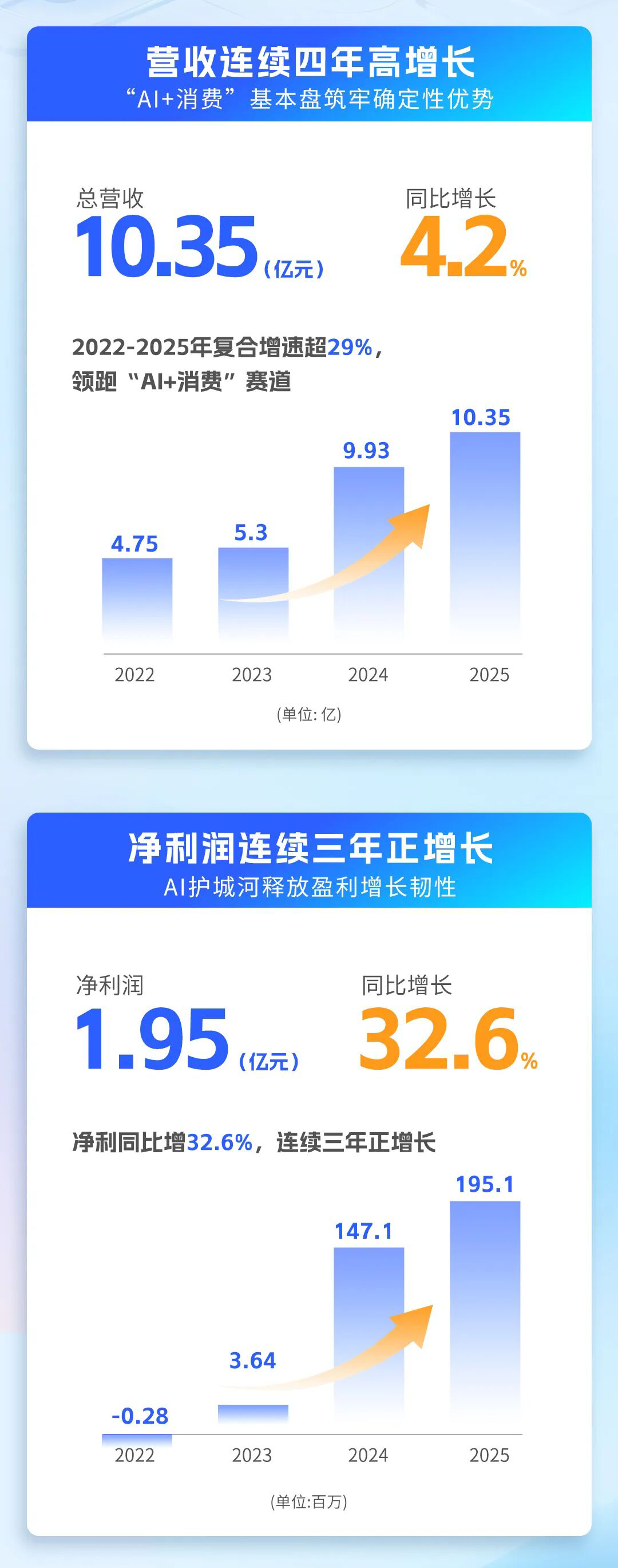 成长速度维度,量化派2022-2025年,总营收从4.75亿元攀升至10.35亿元,复合增长率近30%,这样的速度在整个“AI+消费”赛道都十分罕见;