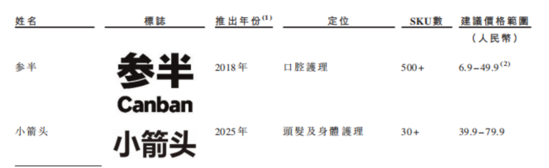 其他个护产品于2025年首次推出,主要为“小箭头”品牌旗下的头发及身体护理产品,2025年收入为805.4万元,占收入总额的0.3%,毛利为341.3万元,毛利率为42.4%。截至最后实际可行日期,“小箭头”品牌累计零售额已超过4000万元。