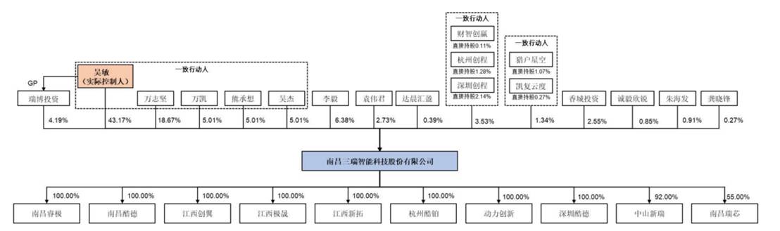 三瑞智能的股权结构呈现高度集中化特征:实控人吴敏通过直接持股(43.17%)、控制瑞博投资(4.19%)及与四位亲属签订《一致行动协议》,合计掌控81.06%的表决权。这种“家族式”治理模式在IPO审核中向来是监管重点,而三瑞智能的案例更具典型性。公司多位核心管理层与实控人存在亲属关系,这种“血缘纽带”虽能提升决策效率,但缺乏现代企业制衡机制,易滋生关联交易、利益输送等问题。