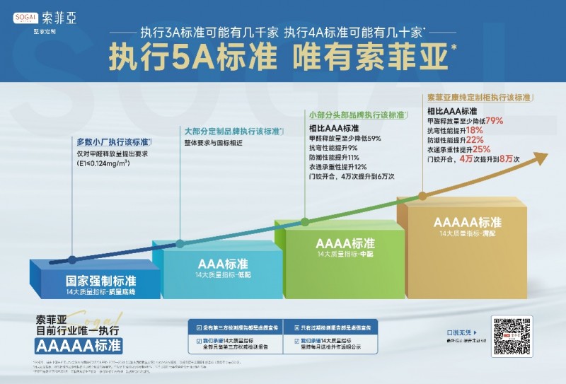 值得关注的是,索菲亚率先执行中国定制家5A标准,不仅是对品质的承诺,更是将个性化全案服务在关键环节实现标准化、可量化,为其实现高效、规模化交付提供了基础,也成为其建立长期客户信任的重要依托。