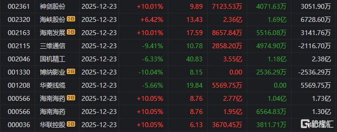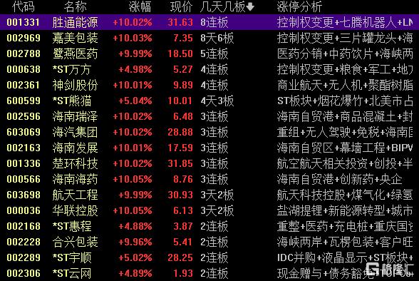 高位股方面,福建本地股安记食品16天9板、鹭燕医药5连板,实控人变更的胜通能源8连板、嘉美包装5连板,商业航天概念股神剑股份4连板。