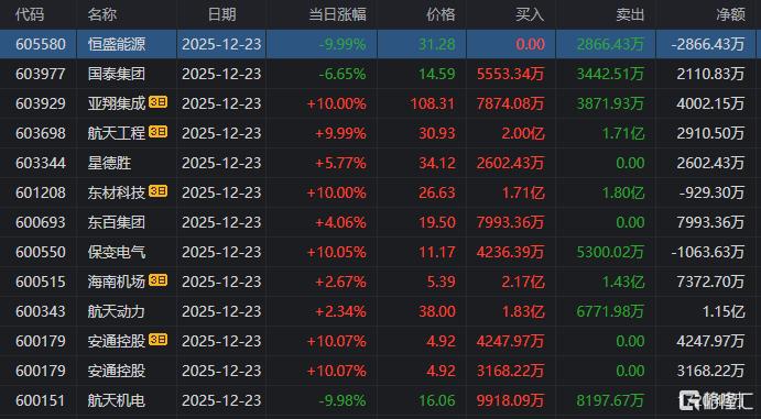 东北猛男:净买入航天动力1.06亿元,净卖出星德胜1925.73万元