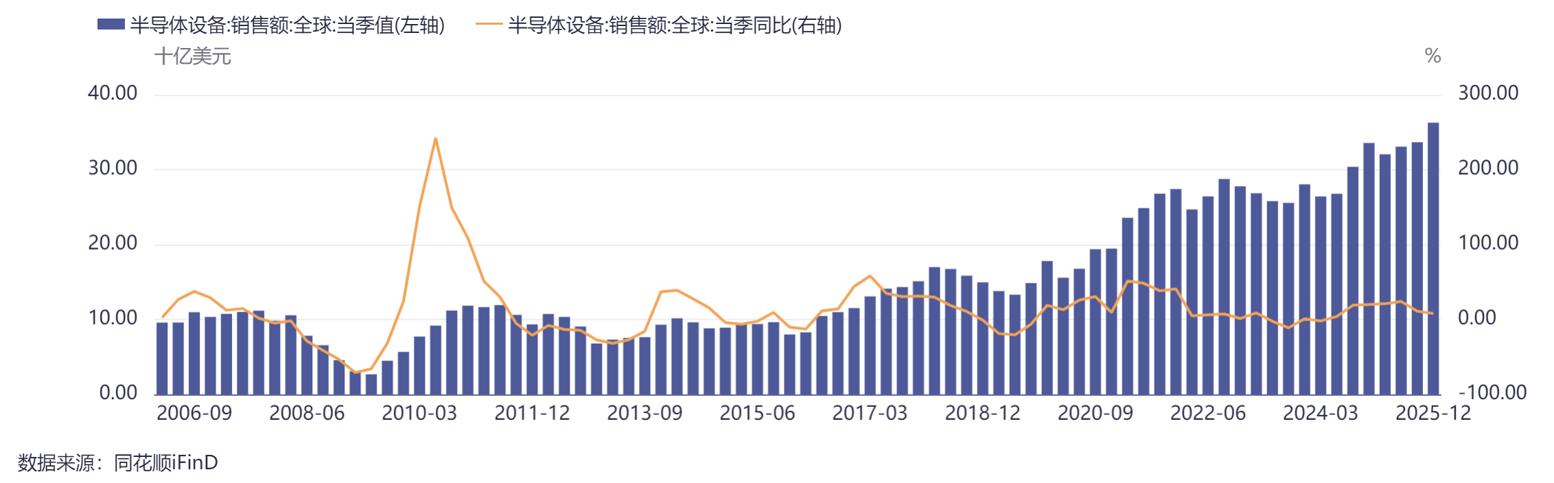 设备方面, SEMI统计数据显示,受惠于先进逻辑、存储及AI相关产能持续扩张带动,2025年全球半导体制造设备销售总额达1351亿美元,创历史新高,增长15%。国产设备先进工艺突破与验证持续推进,开源证券看好半导体设备有望成为科技行业后续主线之一。